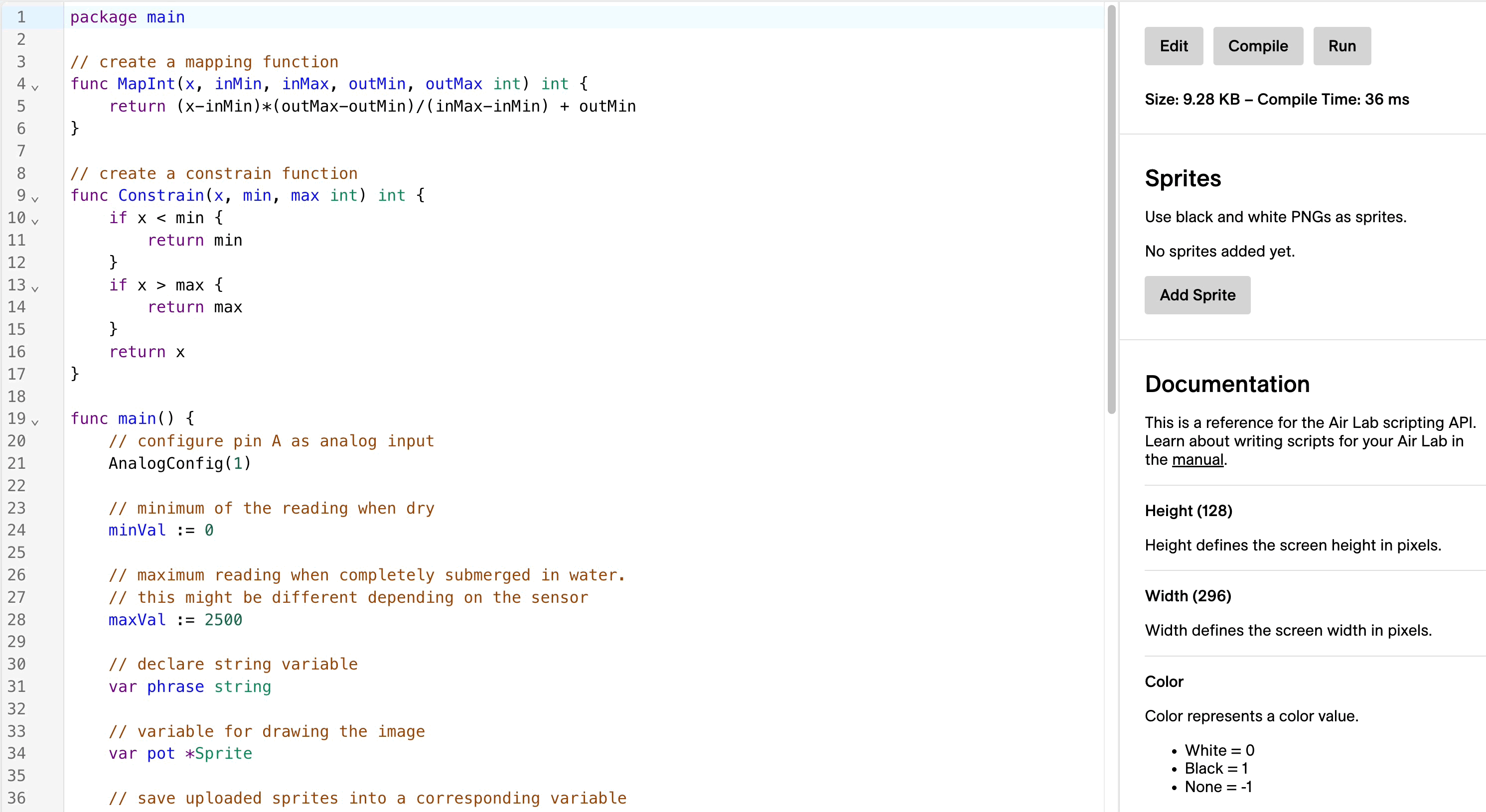 Learn how to connect an external soil-moisture sensor and write a script that notifies you when it’s time to water your plant. The script will run on the Air Lab as a plugin and will be written and compiled in the Script Editor.